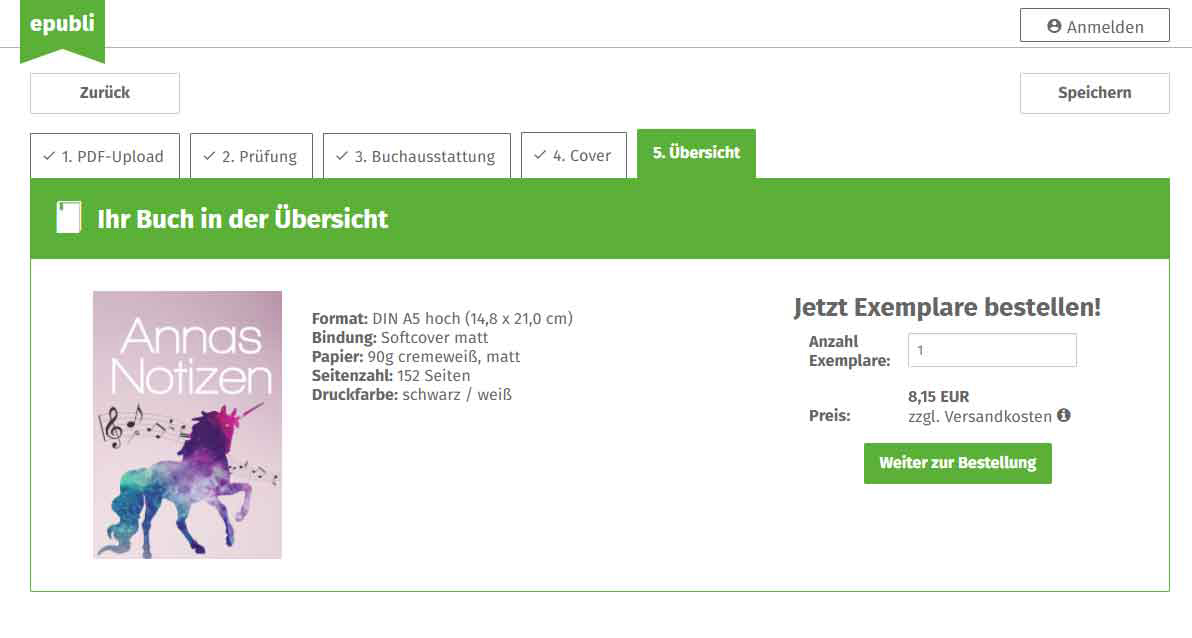 Wir geben Ihnen Tipps bei der Gestaltung des Innenlayouts und Ihres Covers. Wenn Sie Ihr Notizbuch gerne drucken lassen möchten, ist das bei epubli bereits ab 1 Exemplar möglich.